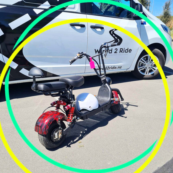 Bigger Battery... Wider...3 Disc Hydraulic Brakes...Bigger Motor...Rear Wheel Drive...Hand Brakes...Tow Bar...Safer more stable to ride...FREE SHIPPING3 Year Warranty